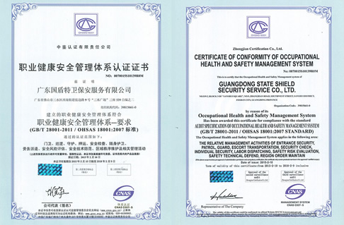 職業(yè)健康安全管理體系認(rèn)證證書