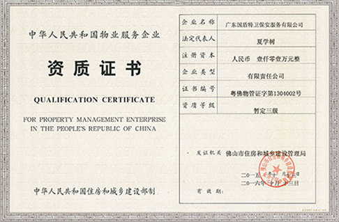 物業(yè)服務(wù)企業(yè)資質(zhì)證書
